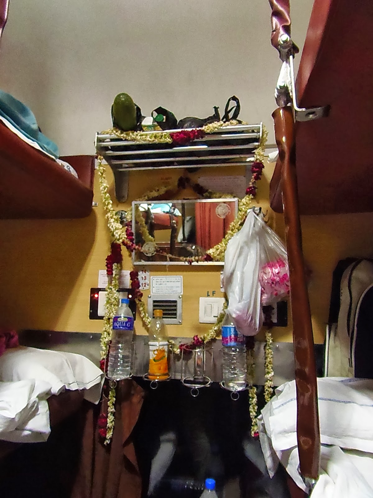 Cuando despertamos, nuestro gurú ya se había ido pero se había dejado toda la decoración. Anna vino a despertarnos y nos contó que normalmente cuando van a despedir a los gurús al tren les llevan regalos, y probablemente esos eran sus regalos de despedida.
