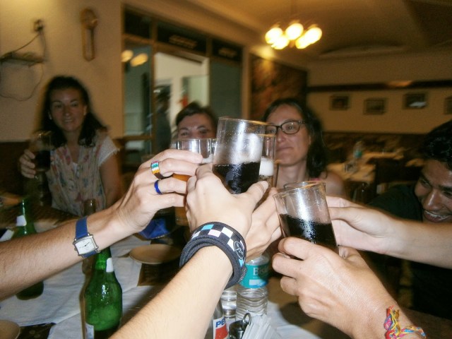 Cuando bajamos de la visita fuimos al hotel. Habíamos quedado en la habitación de Angela y Virtu, para hacerle un video de regalo a Nani, que nos quedó precioso de la muerte 😉 Cantamos y bailamos. Todo fue bastante improvisado, pero es lo que tiene ser artistas! jeje