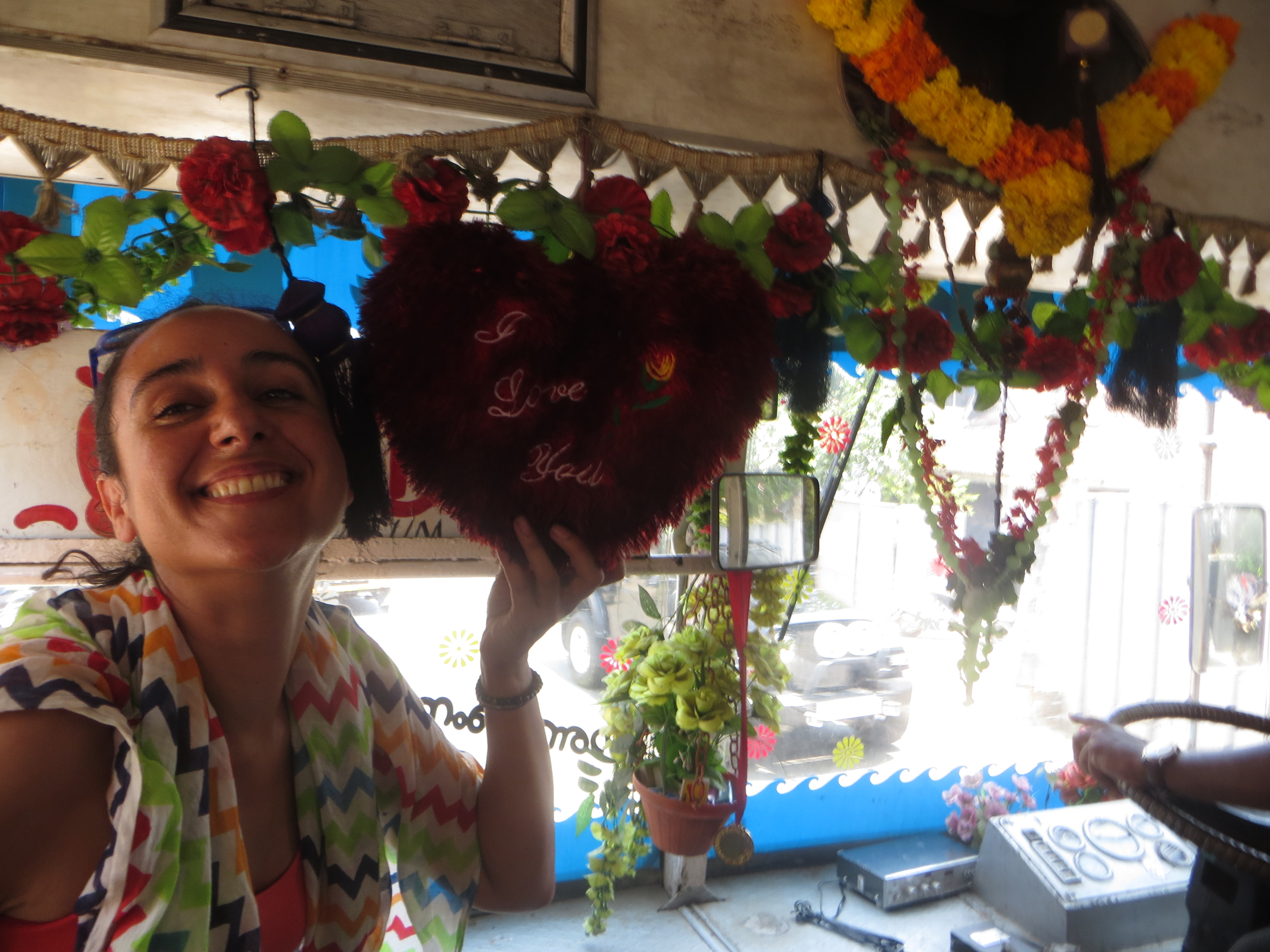 Al llegar a Cochin nos bajamos en la parada donde bajaba más gente… Le echamos un ojo a la lonely planet y decidimos ir a Fort Kochi que era la visita obligada, cogimos el mapa y vimos que había que coger otro autobus. De repente se paró uno justo delante de nosotras; era un autobús estilo comparsa de carnaval, como casi todos en india; lleno de flores de plástico colgadas por todos lados y de corazones, muy alegreee, vamos! XD El busero nos preguntó de donde éramos y nos dijo que subiéramos que nos iba a enseñar Cochín… 😀