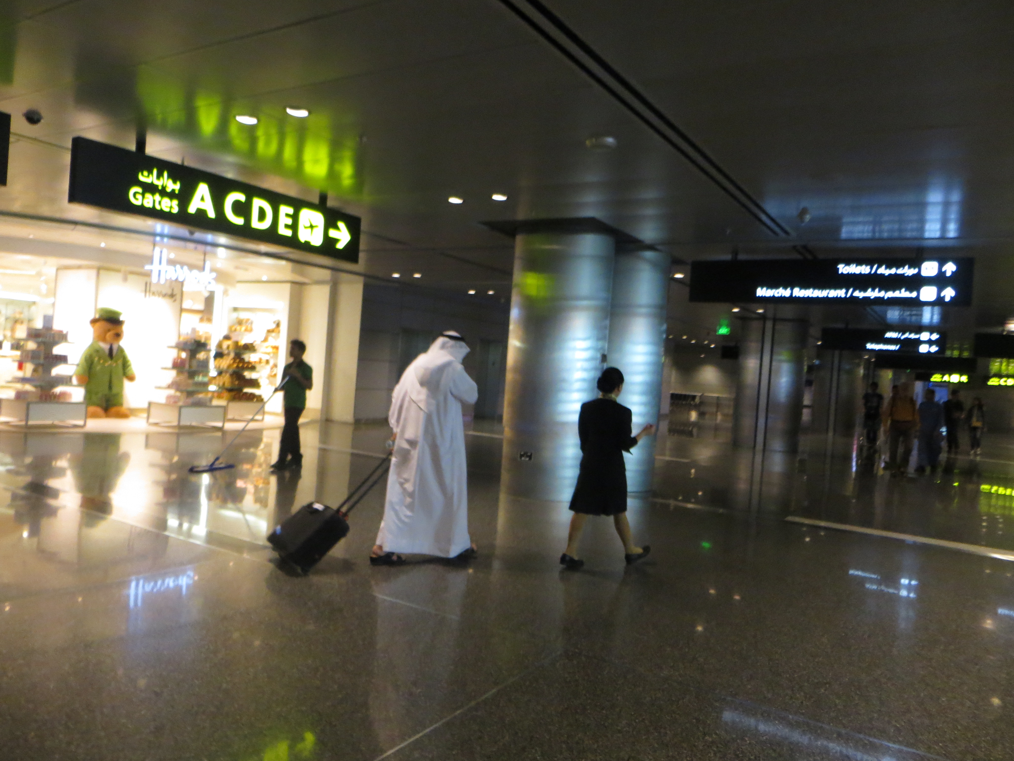 El aeropuerto de Doha es un lujo, una exhibición de riqueza; muchas tiendas caras, mucho burka y mucho dorado…