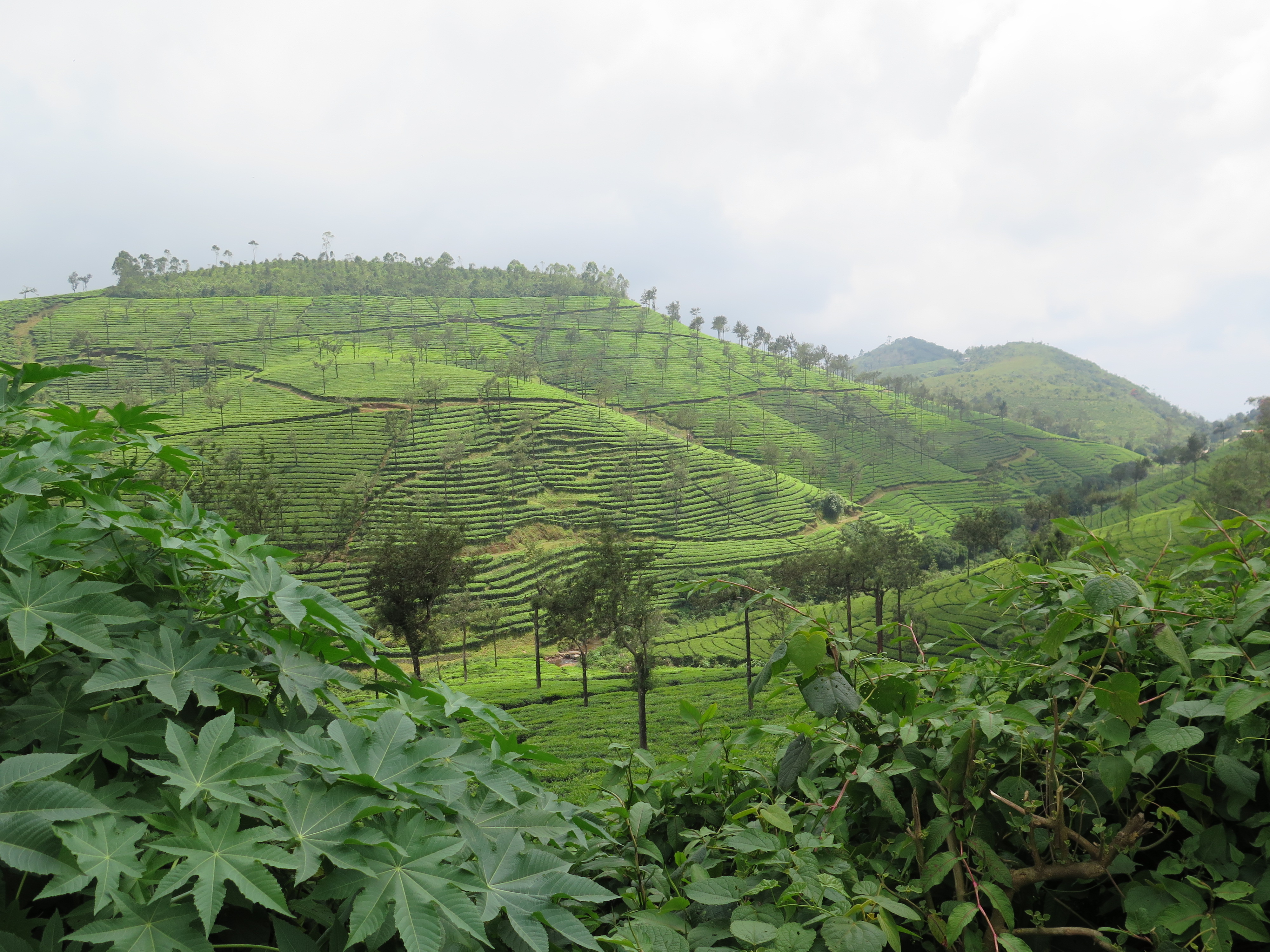 Kerala es aún más verde que Goa y más exuberante; campos de arroz, de té, mangos… El conductor tuvo que parar varias veces para que hicieramos fotos; él mismo nos mostraba las cataratas, las fábricas de ladrillos, los enormes extensiones de cultivo y luego nos decía que era lo que cultivaban… algunos frutos eran tan raros, que ahora me arrepiento de fiarme de mi buena memoria y no haberlos apuntado. Unas frutas gigantes que no había visto en mi vida … Hay miles, millones de tonalidades de verde y unos cultivos en socalco que dejan sin respiración. En muchas plantaciones venden té en una especi de chiringuitos que tienen en la carretera y te ponen en letras gigantes a cuánto va el kilo ¡precios de risa! Para llegar a Periyar National Park hay que subir por unas carreteras llenas de curvas rodeadas de naturaleza y de repente notas que la temperatura empieza a descender…