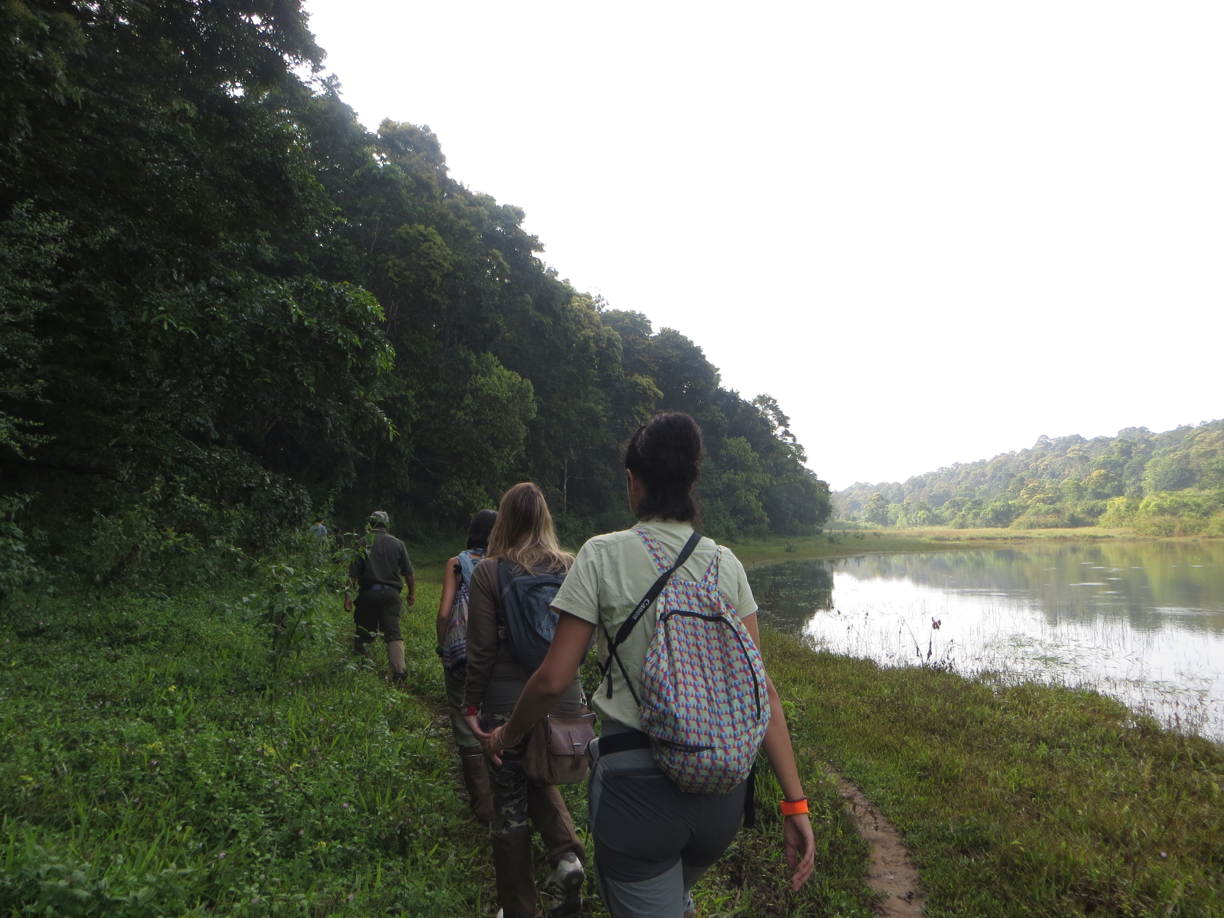 Ya sólo por caminar por esta selva, el santuario de animales salvajes en libertad, merece la pena visitar Periyar (Aunque sólo sea para contribuir con el precio de la entrada a su mantenimiento) El problema fue cuando empezamos a estar invadidas de sanguijuelas; nos subían por los zapatos, se metían por los agujeros de los cordones, incluso se metían por las fundas que nos habían dejado en el parque … de vez en cuando parabamos para quitarlas con un palo y el chico más joven nos echaba talcos en las fundas y en los pies para que cayeran…