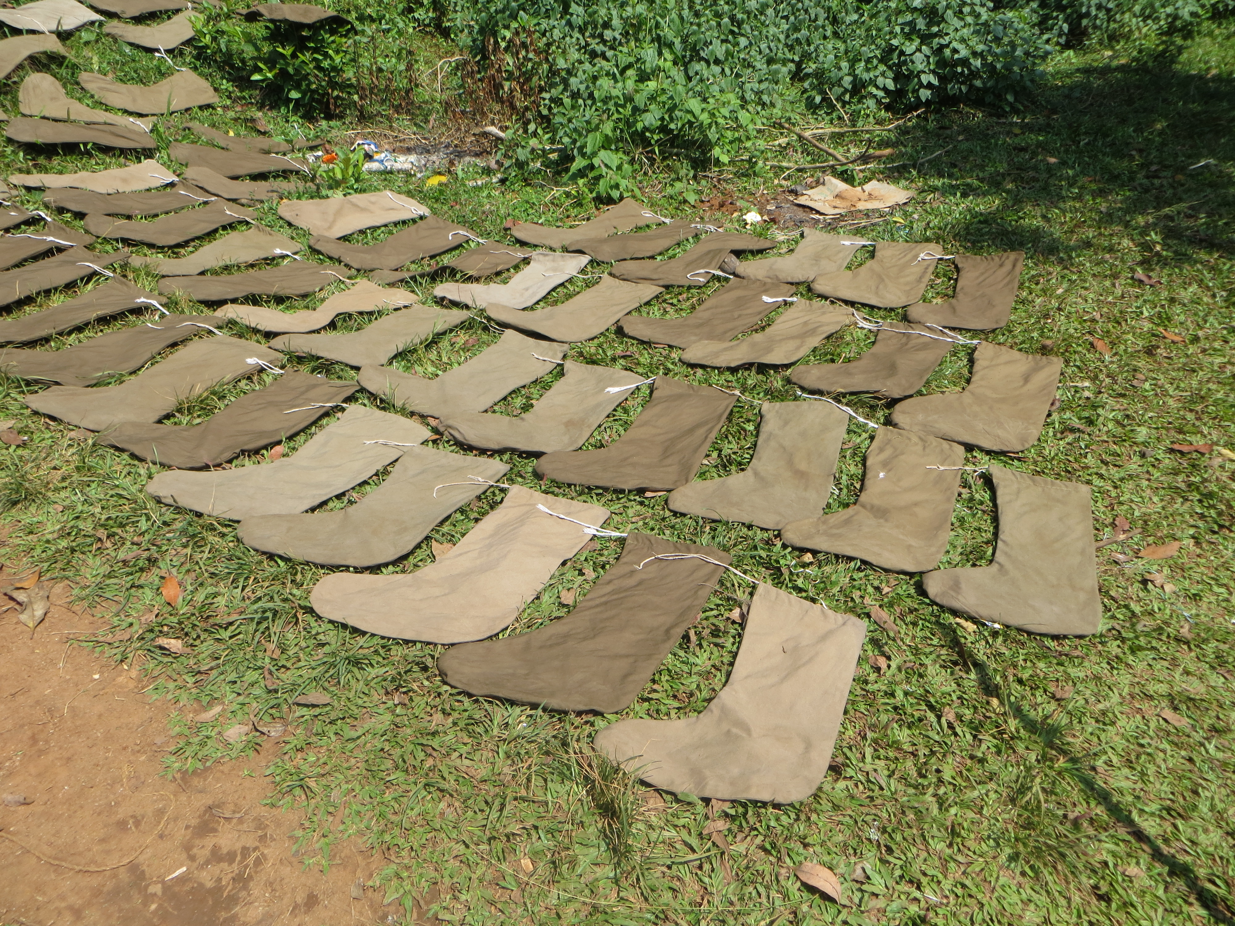 Luego empezaron a hablarnos de la posibilidad de que hubiera sanguijuelas por la humedad; pensé que sería un cuento para darle más emoción. Nos pasaron unas botas de tela para ponernos por dentro de los zapatos y cuando estábamos calzadas nos dijeron que teníamos que hablar en bajo y tratar de no hacer ruídos porque los animales son muy sensibles a cualquier ruído y podríamos espantarlos…