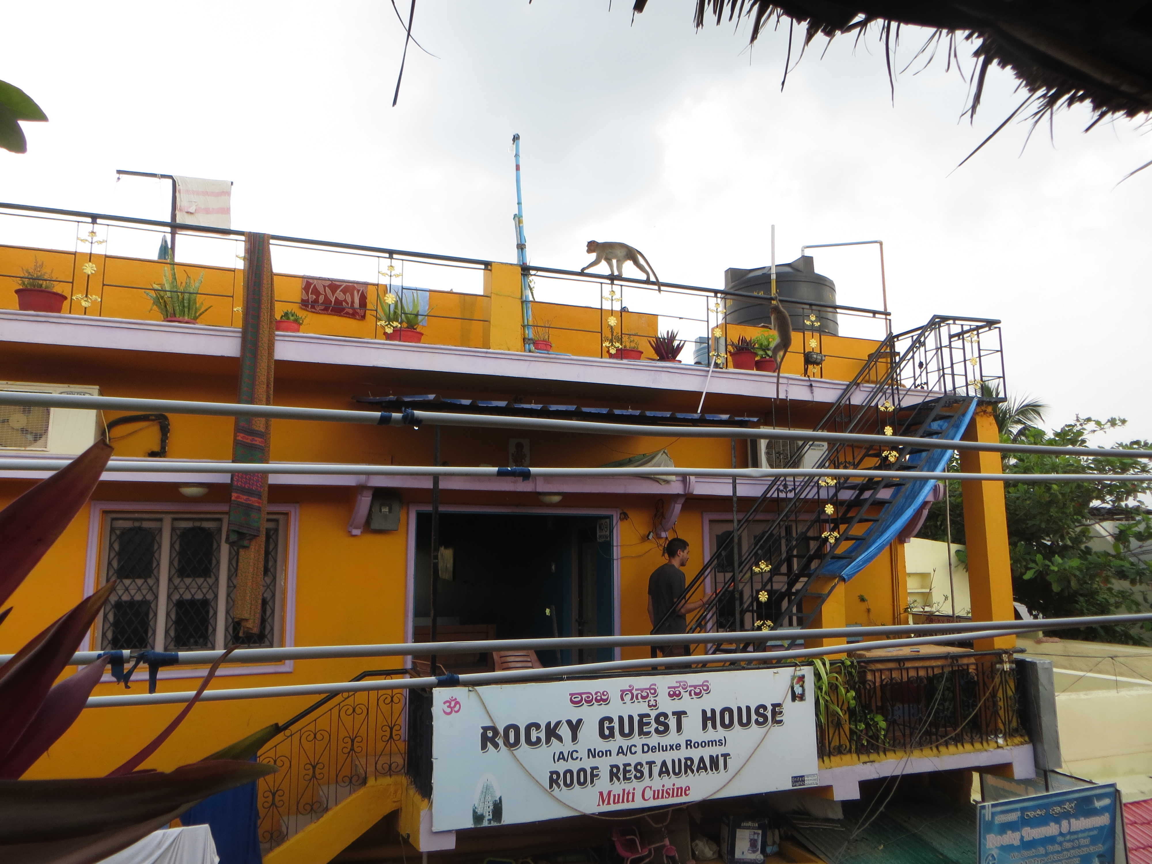 Un mes antes de llegar a Hampi habíamos encontrado una guest house con muy buena puntuación en TripAdvisor; «Rocky Guest House» y como la gente hacía tan buenos comentarios del sitio, estuve mirando como podíamos reservar y alojarnos allí, puesto que desde la página no se podía y tampoco aparecían los precios.