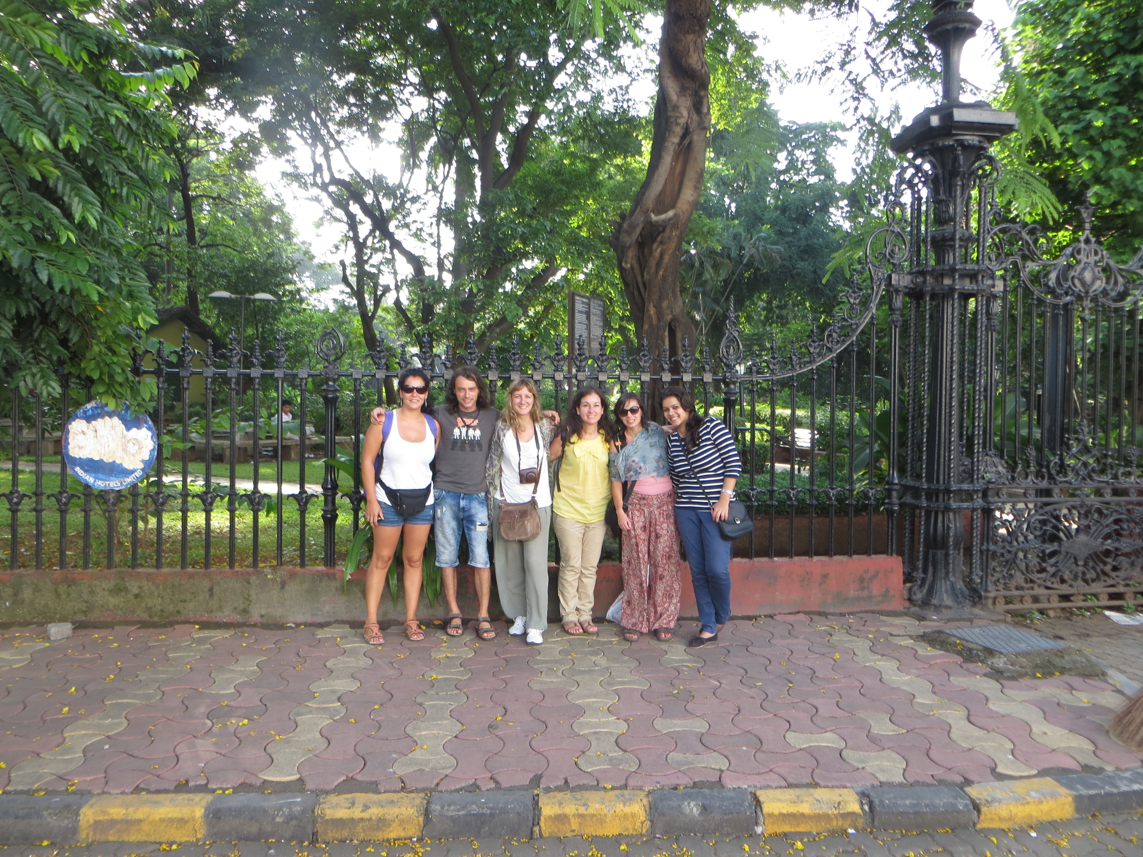 Así llegamos a la puerta de Mumbai, donde un montón de gente hacía cola para hacerse fotos y posar delante del monumento. A los indios les encanta hacer turismo, ya lo habiamos comprobado en Delhi, cuando quisimos visitar el templo de Lotus. Los domingos vienen de todas partes del país a las ciudades para visitar sus monumentos y sus templos … No hay ni que decir que allí fuimos la atracción; algunos nos quitaban fotos con el mobil, otros nos pedían sacarse una foto con nosotros y aunque Dishit ponía cara de que no le gustaba mucho, a nosotros no nos importaba nada posar como celebrities… Además Mayka trae mechas rubias y ese motivo le convirtió en un foco atención; todos querian hacerse fotos con ella y Alex decidió por un momento, convertirse en su manager y pedirle 100 rupias por foto a uno de los chicos que esperaba para hacerse la foto y consiguió disuadirlo!! la pela es la pela!!! 😉 jaja
