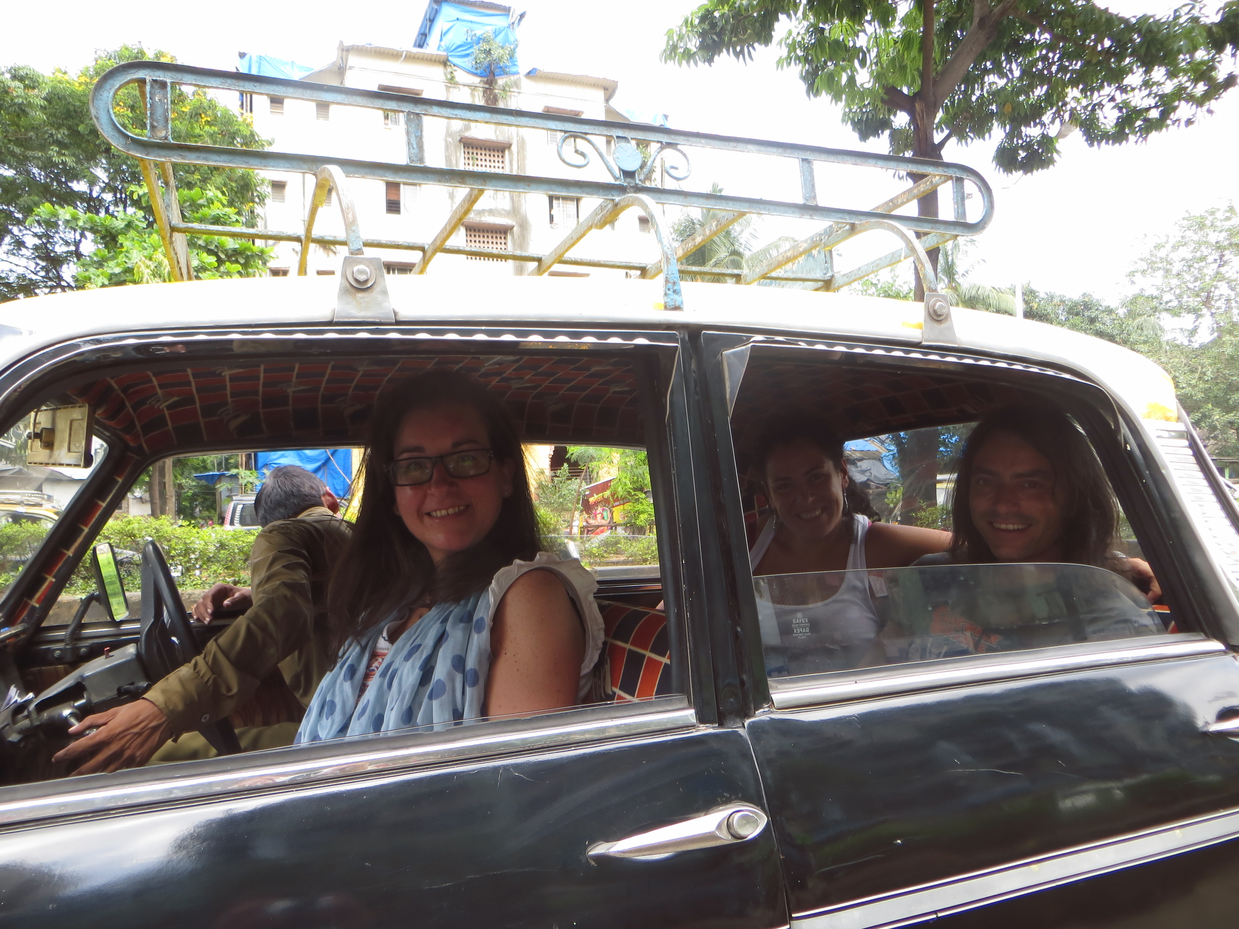 Era el más cutre que encontramos, la teoria de Alex bastante bien fundadamentada es que cuanto más viejo y destartelado sea el taxi, saldrá la carrera más barata. Nuestro taxi era viejo vale, pero de modesto nada! Estaba tapizado con una especie de moqueta naranja con dibujos psicodélicos y el taxista era la mar de majo, pero como casi todos los taxistas en la India, no tenía ni idea de donde quedaba nuestro hostel y nos dejó donde le dio la gana… 😦 Y tuvimos que acabar cogiendo otro taxi porque aunque no nos había dejado demasiado lejos, estábamos cansados y cargados con mochilas… 100 rupias más para el nuevo taxista! Bufff