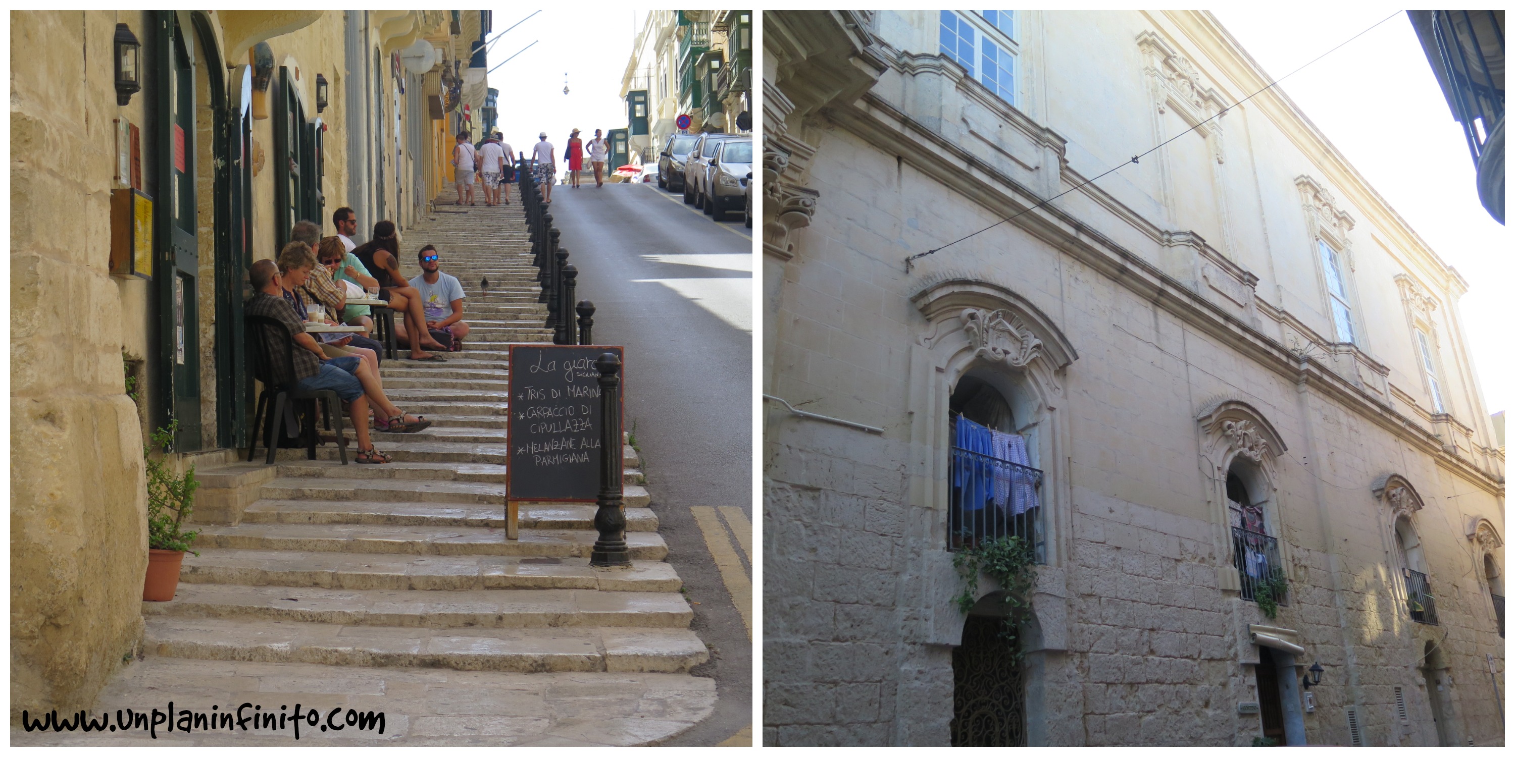 1- Lo primero que llama la atención al llegar a Malta es el tipo de construcción ; casi todas las casas están hechas en caliza amarilla y con contras venecianas de diversos colores. Muchas calles son empinadas y con aceras escalonadas… es también bastante común ver ropa tendida en edificios imponentes.