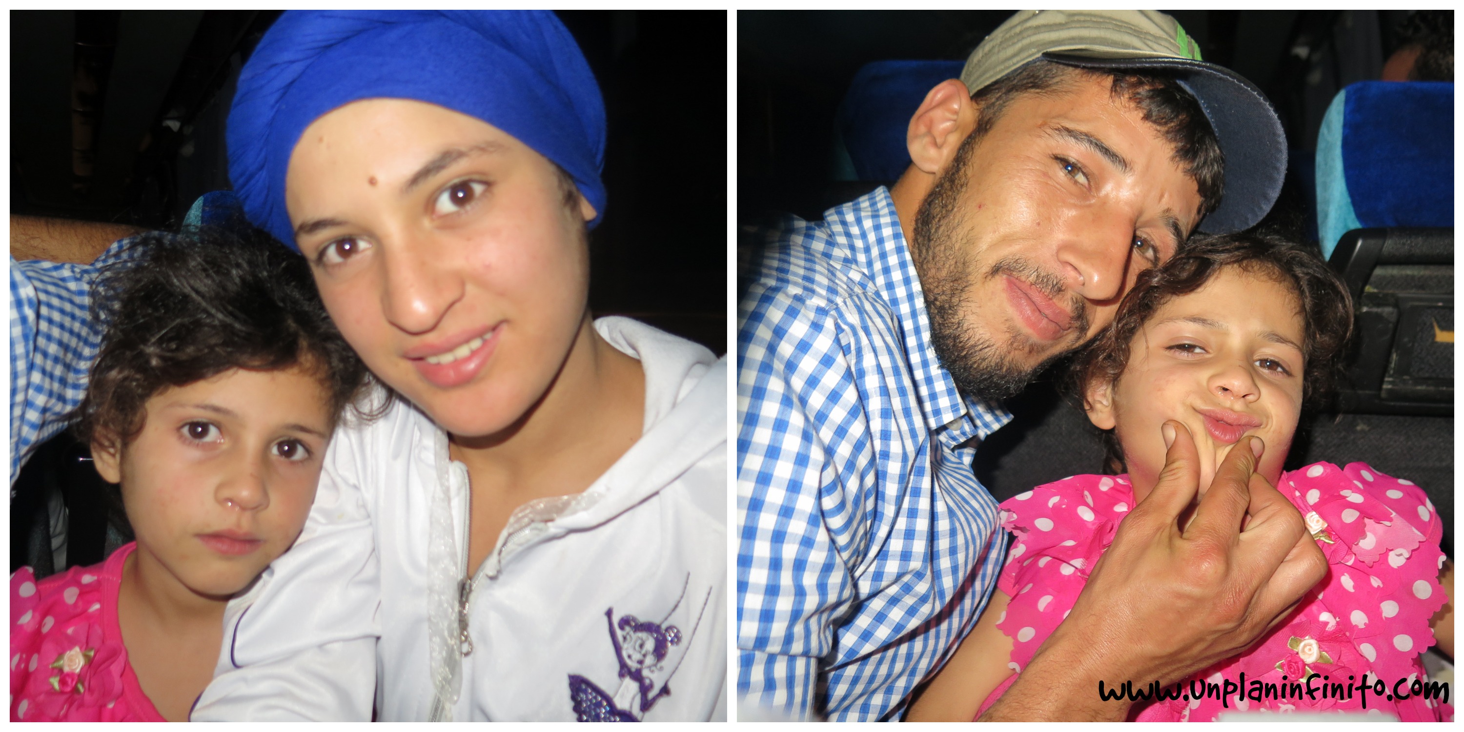 Delante de nosotros se sentaron el chico y la niña que habían hablado con nosotras en la acera y otra niñita pequeña que dormía tumbada entre los dos… ☺️ En un momento de la noche, la niña se puso de rodillas en el asiento, mirando hacia atrás y dijo alguna cosa en francés, luego nos sonrió y nos dió un beso. Entre lo vieja y chalada que estoy, aquel gesto de cariño me emocionó , así que les hice algunas fotos mientras ella posaba sonriente; luego le dejé la cámara para que se viera en las fotos, mientras la otra niña dormía en brazos del chico… Él también nos miraba y cruzó algunas palabras con nosotras… me fijé en que tenía los dientes rotos y en las manos una especie de marcas oscuras , no había sido yo la única, Mayca me lo comentaría luego _ ¿Qué enfermedad tendrá ese chico? ¿Has visto como tiene las manos?