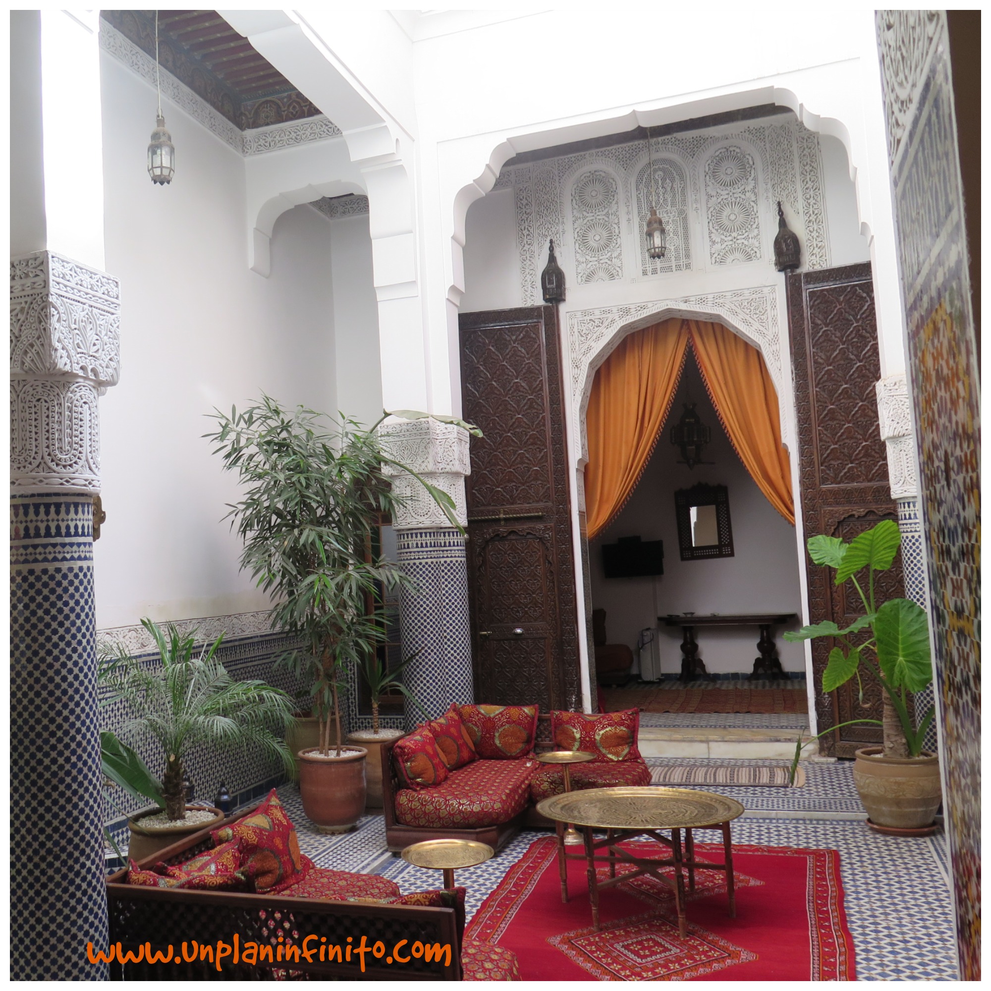 Luego nos acompañó al riad y aunque no quería pasar, le insistimos porque nos sentíamos en obligación con él; ya que no podíamos invitarlo a comer (porque aquel día no comía) por lo menos queríamos acompañarlo en taxi a la otra estación de autobuses, para despedirnos e intercambiar correos y demás…