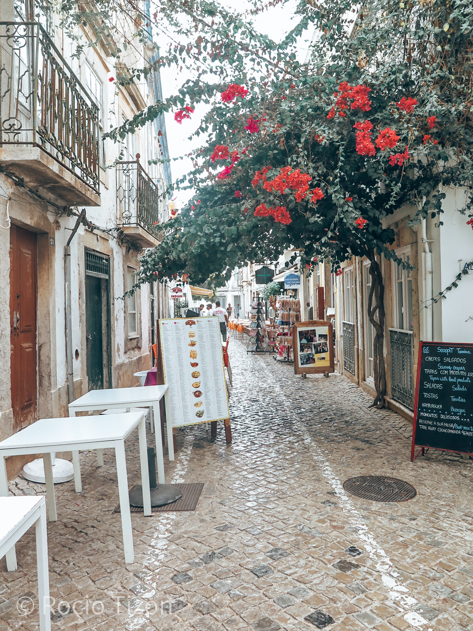 La callejuelas de esta ciudad están llenas de bares, restaurantes, tiendas y cafeterías… Son calles empedradas, con casas de fachadas recubiertas de azulejos y adornadas con buganvillas; creo que nunca he visto tanta variedad de colores en las buganvillas como en toda esta parte del sur de Portugal… En las tiendas, al contrario de lo que pasa en el norte y centro de Portugal; los souvenirs estrella no son los galos portugueses ; aquí abundan las andorinhas y las sardinhas… auténticos símbolos del Algarve portugués.