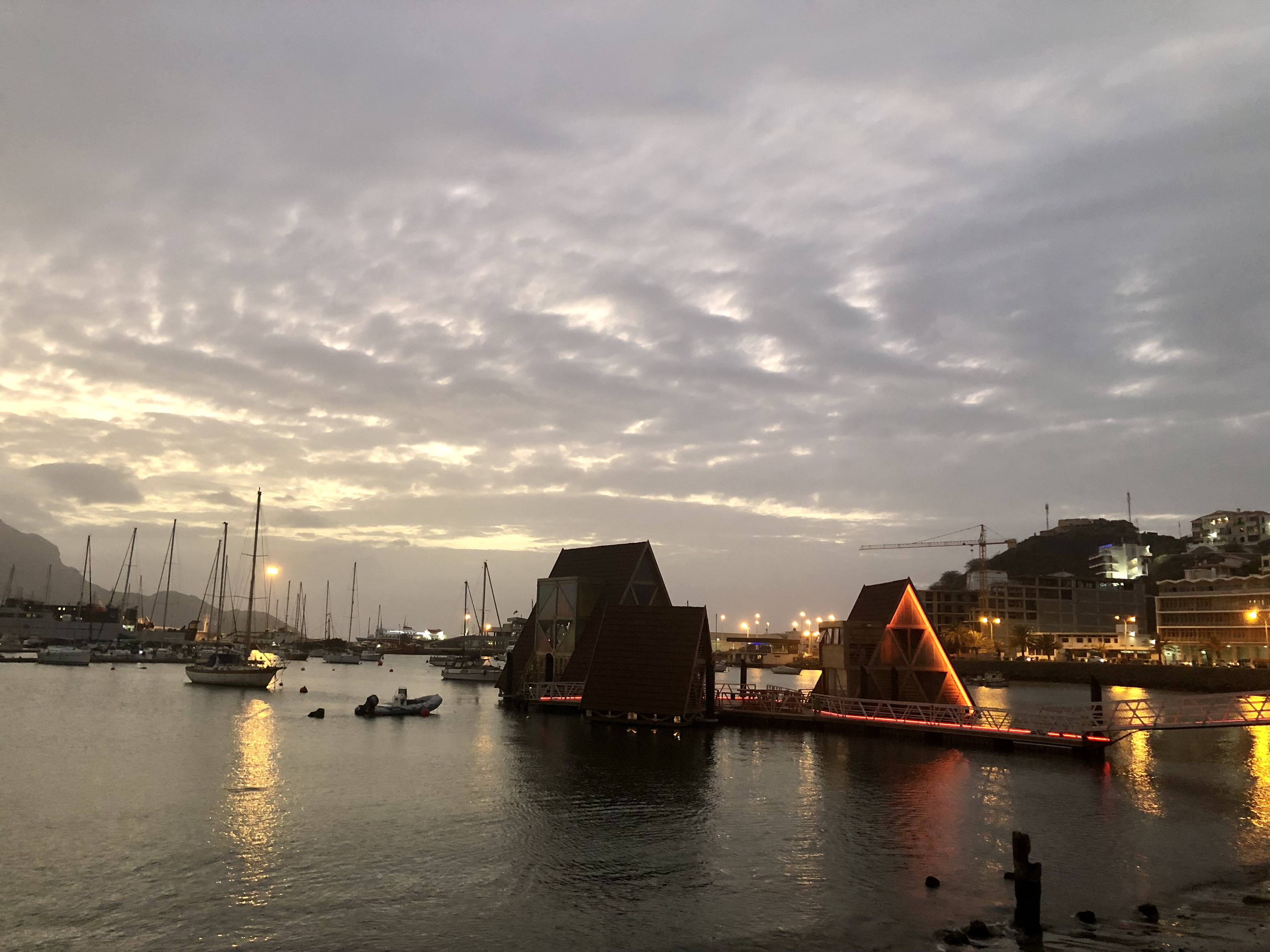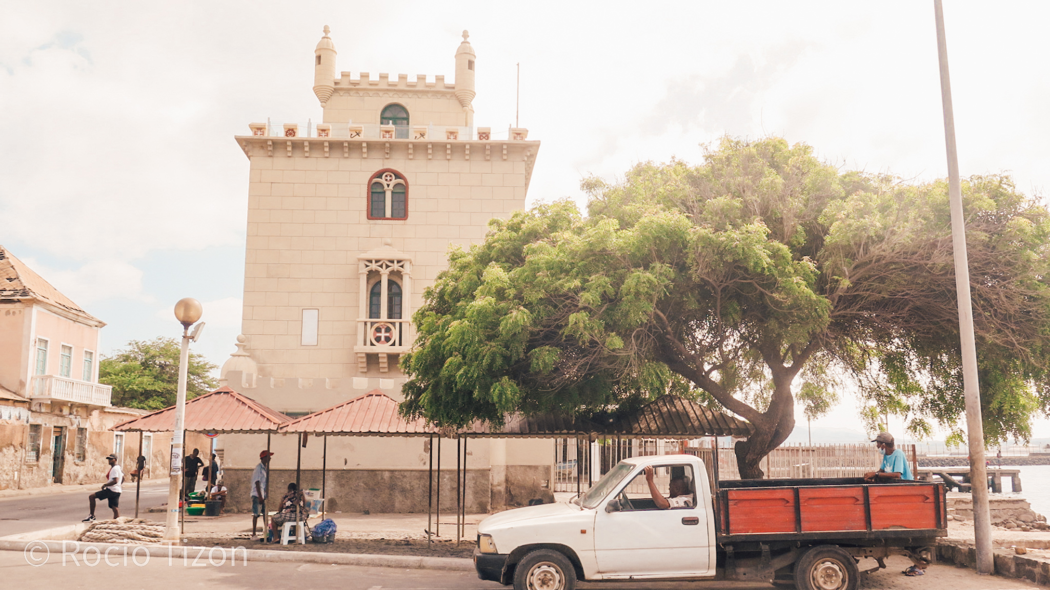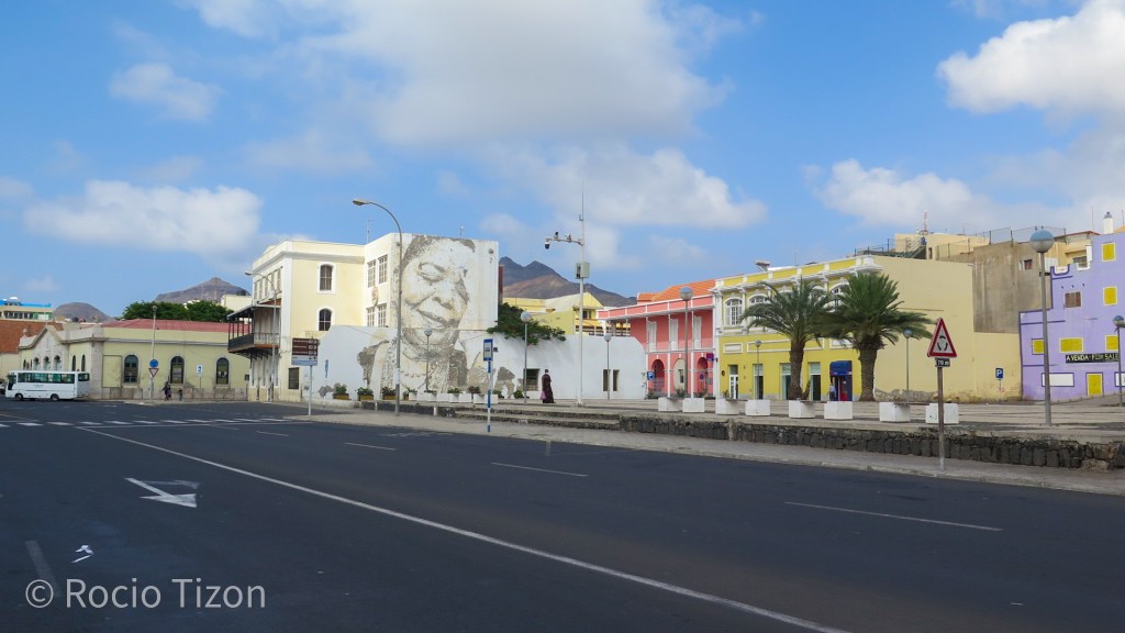 Recorrimos las calles vacías del centro de Mindelo; pasamos por el puerto y tuve que girarme para poder ver por última vez el mural de Cesárea Évora, la reina de la morna… Continuamos por la Plaza de la Estrela y la Torre de Belem, algunos os dirán que no tiene punto de comparación con la de lisboa; yo la encontré especialmente bonita aquella noche; favorecida por la iluminación nocturna.