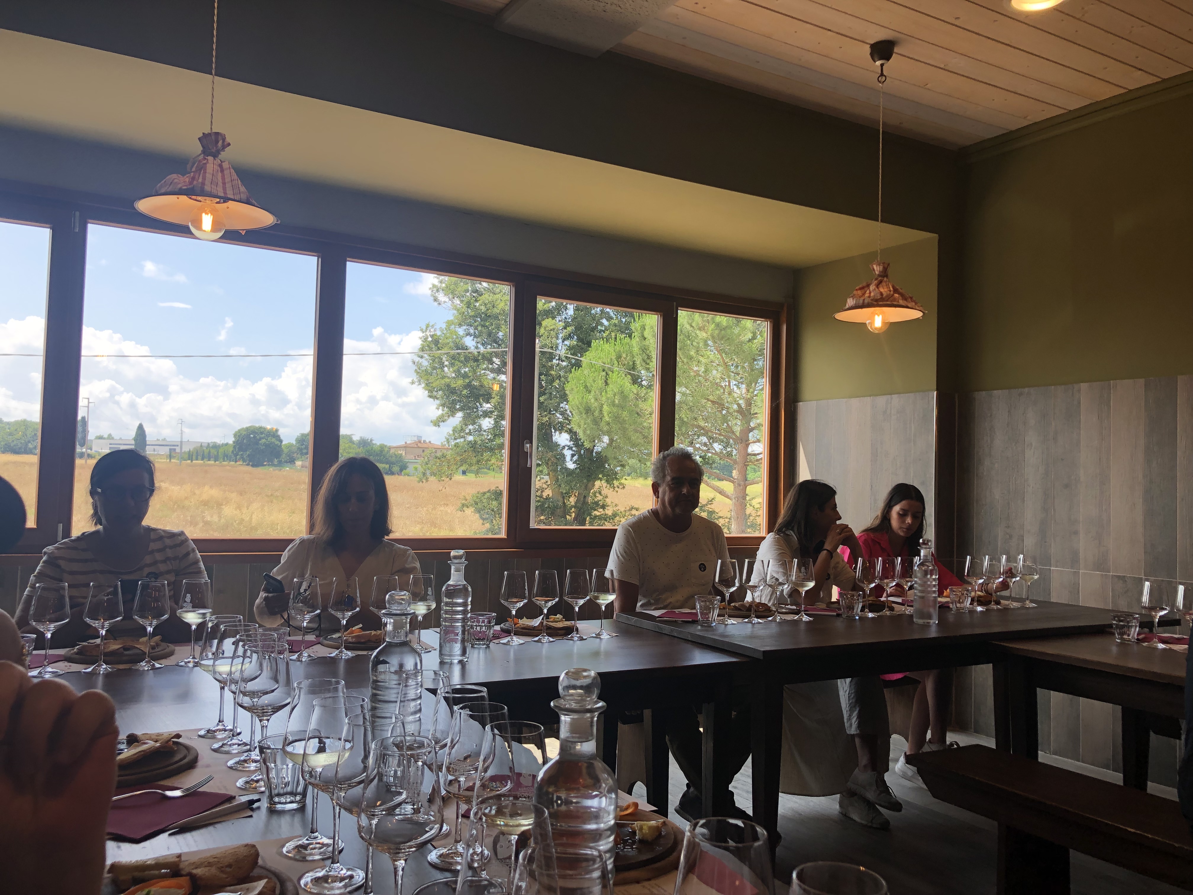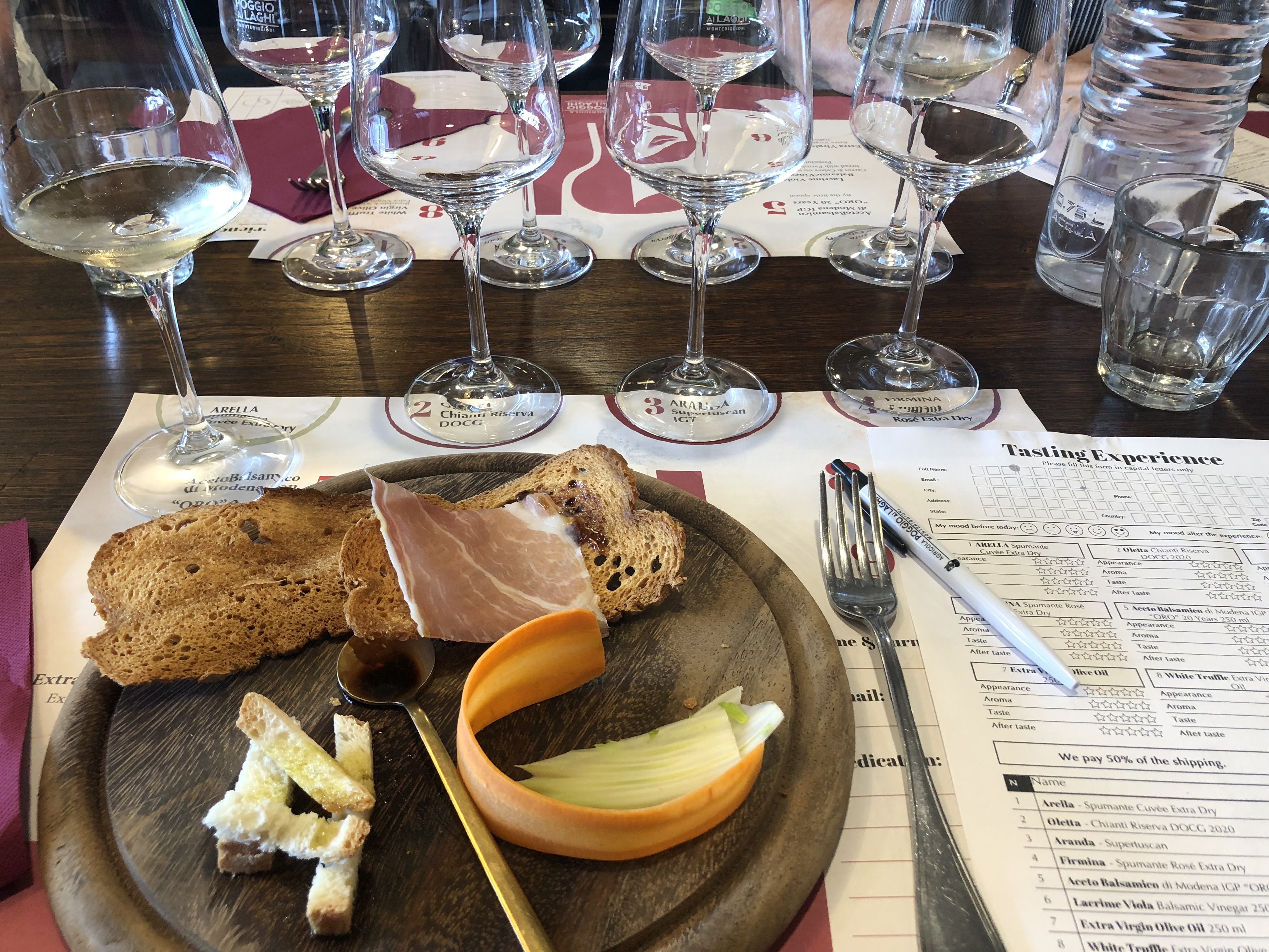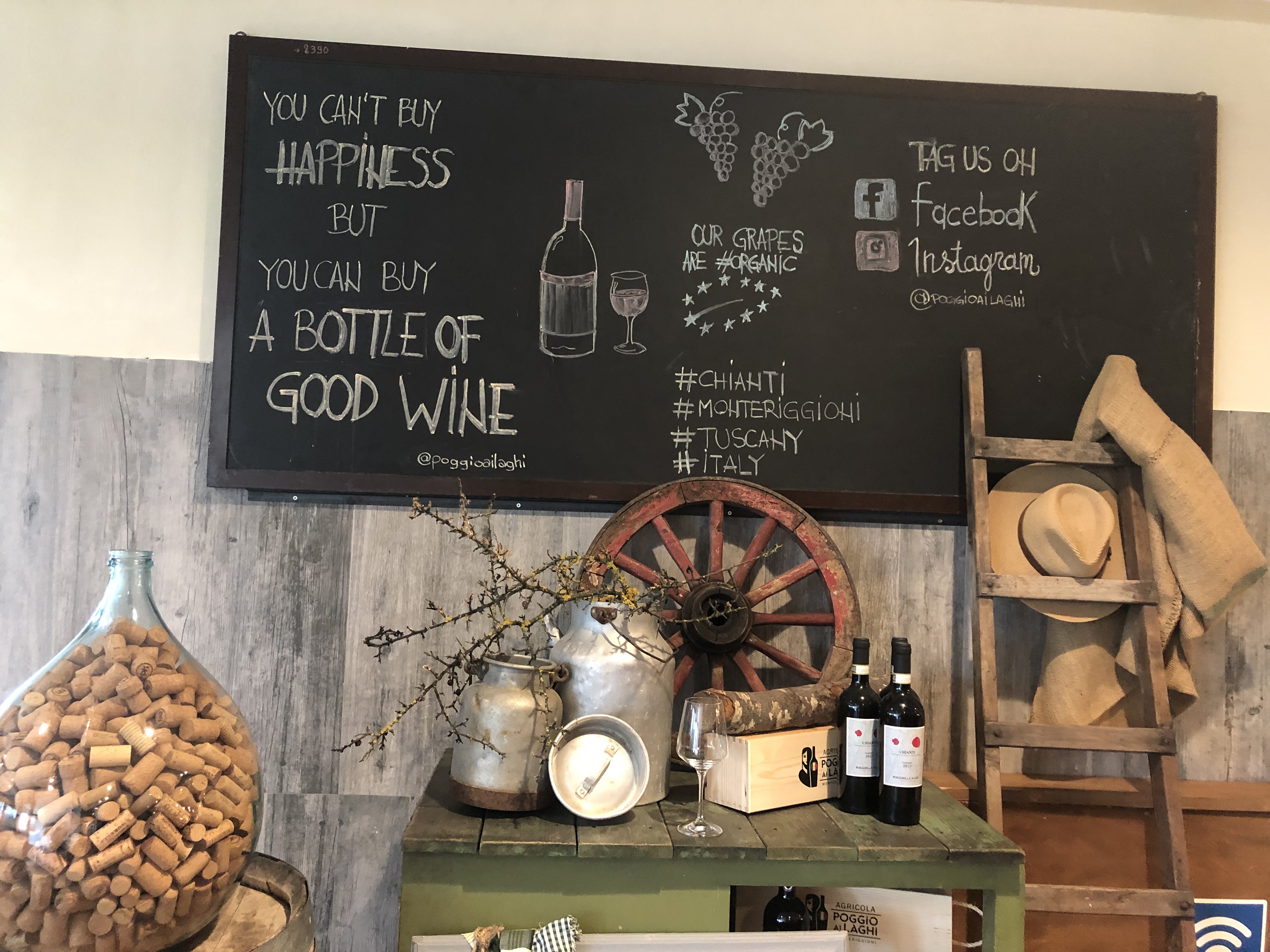 La siguiente parada fue en la región de Chianti. Alguna gente se puede creer que Chianti es un pueblo pero no es así! Cuando hablamos de Chianti es exactamente igual que cuando hablamos por ejemplo del Ribeiro; que sería la zona o comarca donde se produce el «viño do Ribeiro»… Pues Chianti es exactamente lo mismo; se denomina así al vino que se produce en esta zona y también a la zona en sí; que está formada por varias aldeas con muchas hectáreas de viñedo… Fuimos a una de esas bodegas que está rodeada de viñedos y con cipreses en la entrada y allí participamos en una cata de vinos 😋