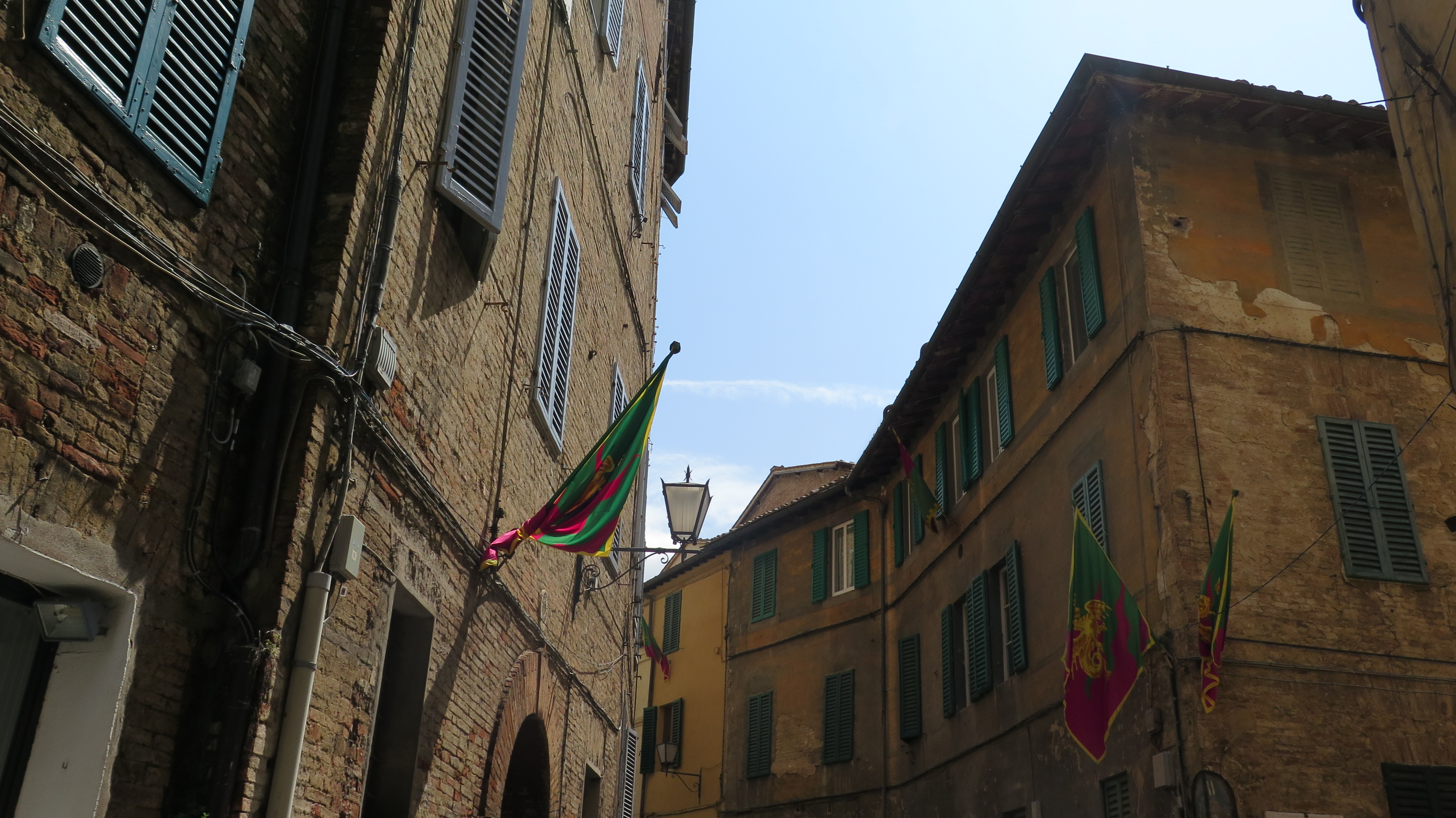 Siena es una ciudad de edificios medievales hechos en ladrillo; una ciudad de color homogéneo perfecta para una postal… Si por algo es famosa Siena, además de por su impresionante catedral , es por su plaza en forma de abanico, Piazza del campo, donde cada año se celebra El Palio y casualmente llegué con todo preparado para El Palio; la carrera de caballos de origen medieval que se remonta al siglo XV y conmemora la batalla que los Sieneses tuvieron contra los Florentinos; este evento se celebra todos los años los días 2 de julio y 16 de agosto, y es una de las fiestas históricas más importantes de Italia.