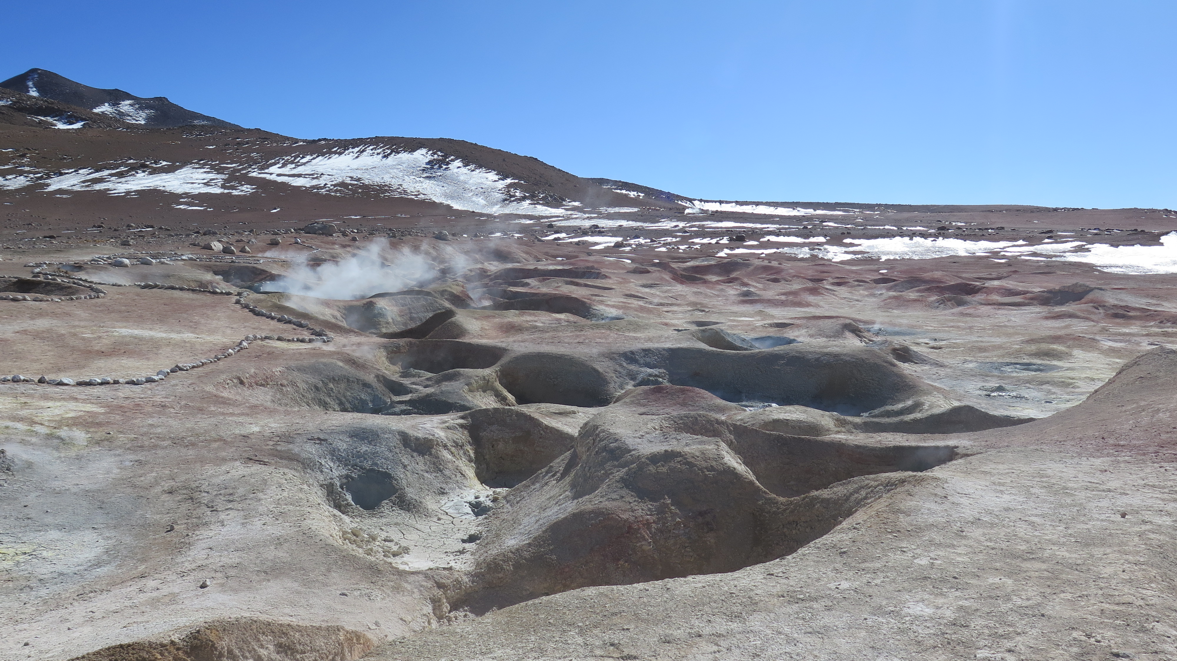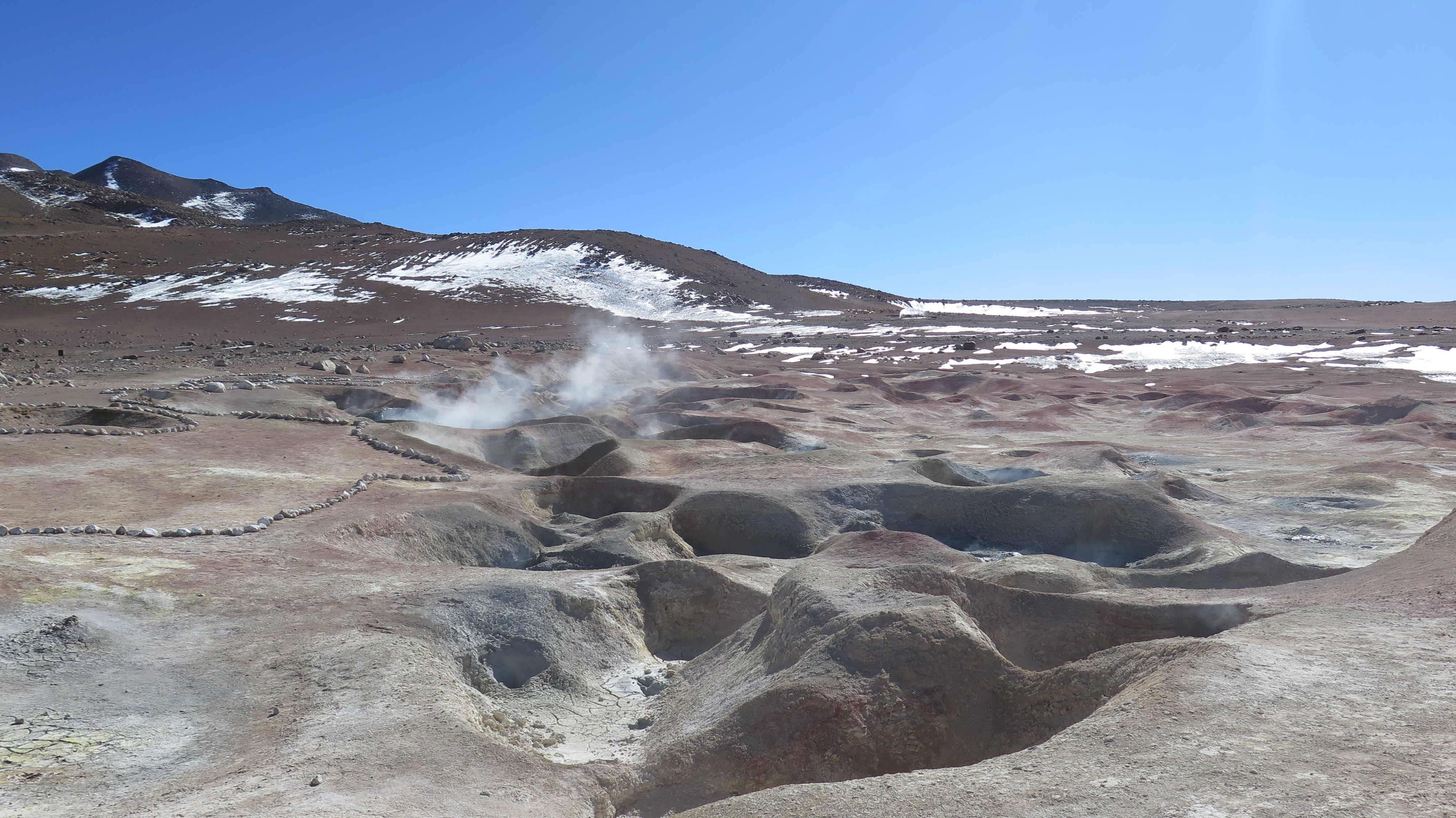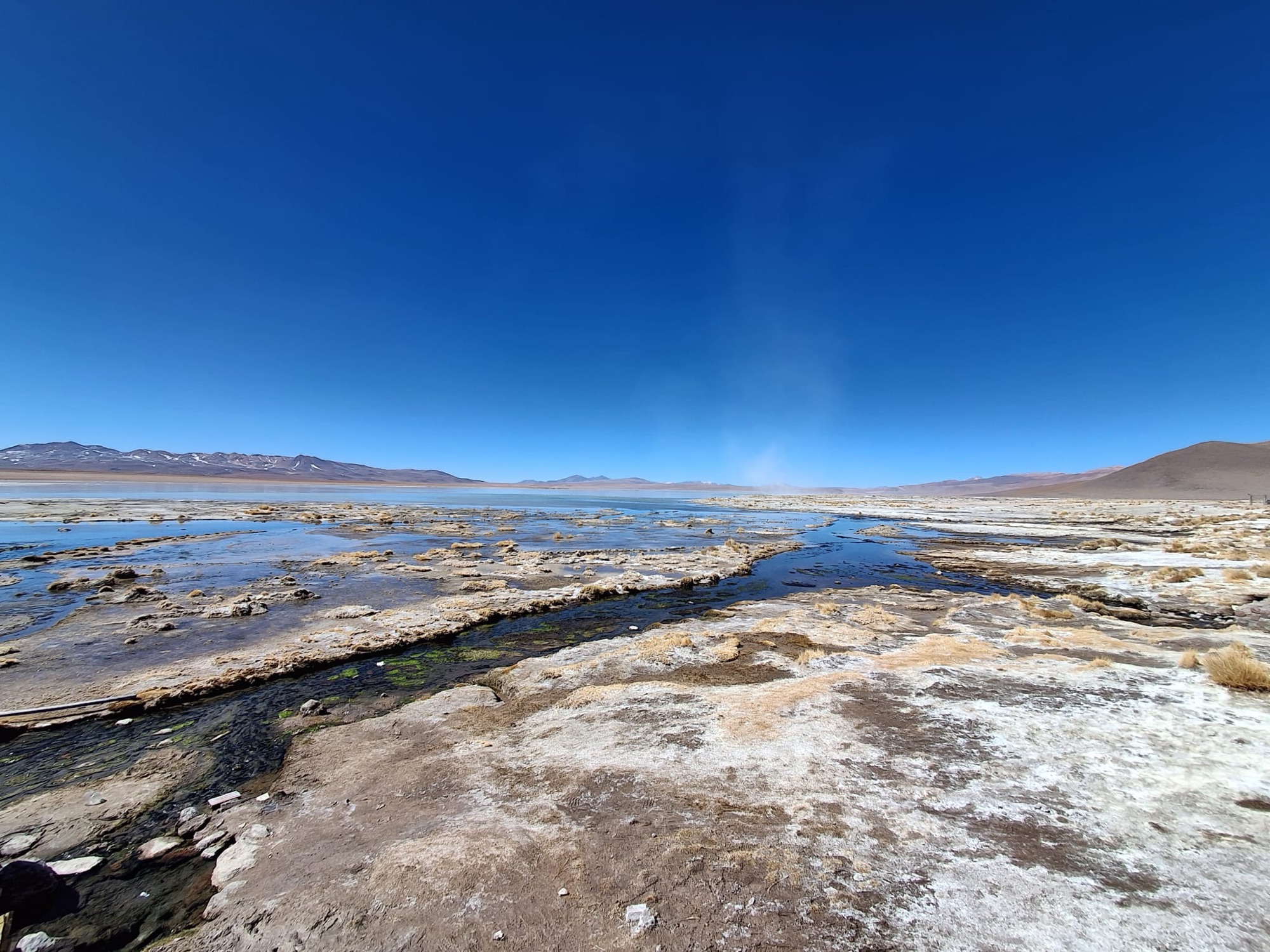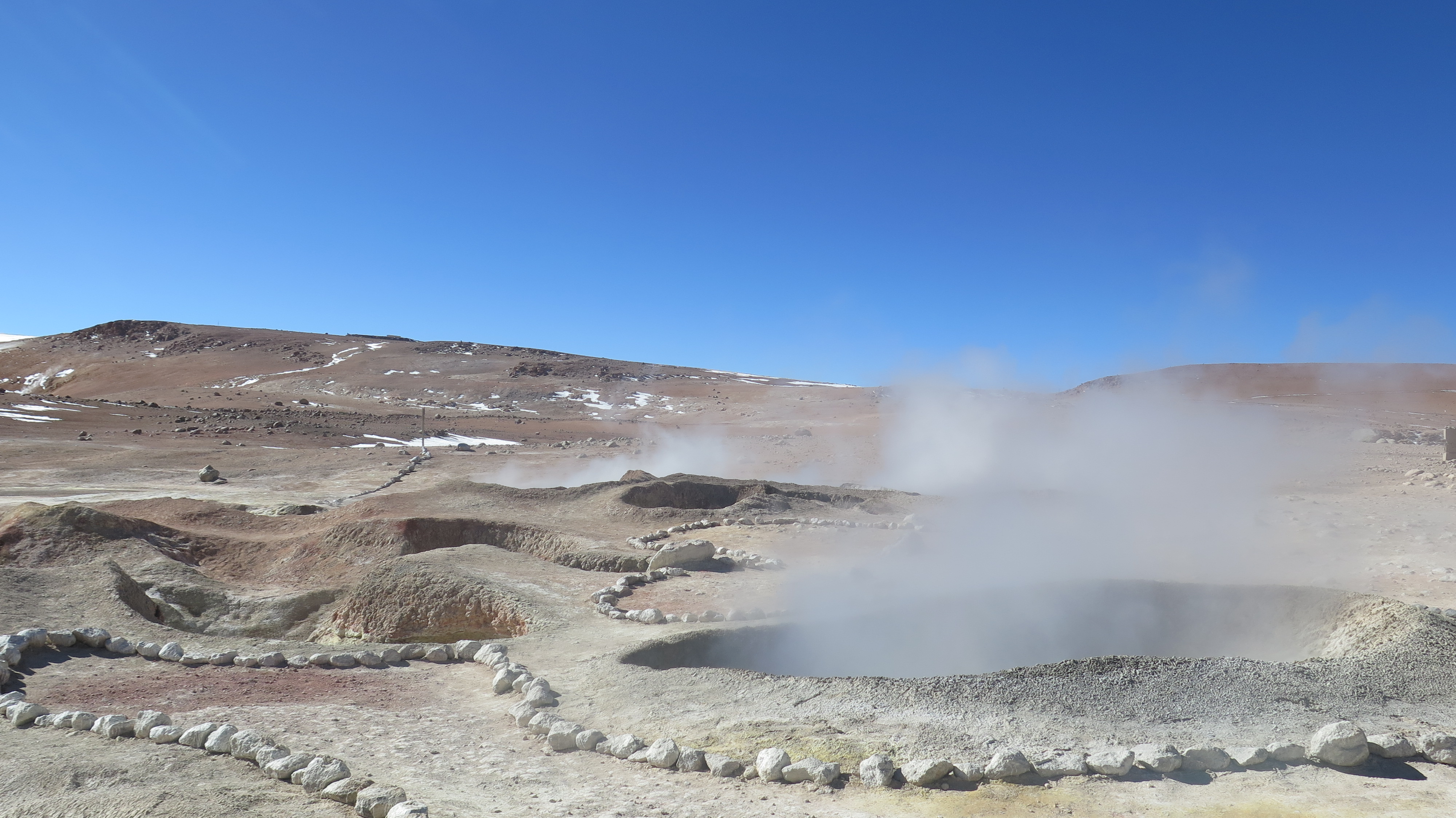 También nos paramos para ver los géiseres y sus fumarolas; que nos recordaron a los impresionantes Géiseres del Tatio, que habíamos visitado unos días antes en la región de Antofagasta a unos 90 km de San Pedro de Atacama.