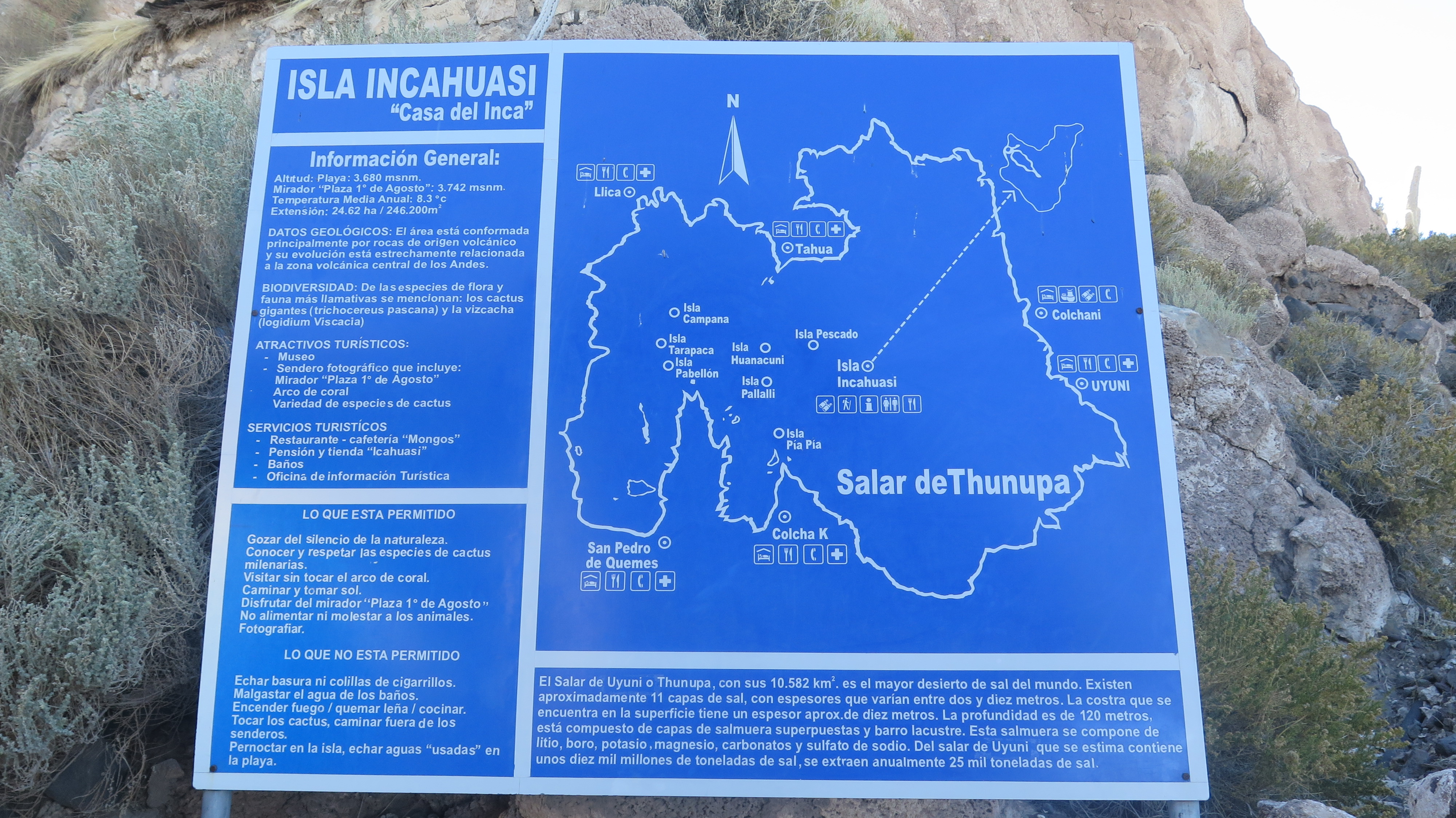 En medio de la enorme planicie de sal, está la isla Incauhasi; una isla  formada por rocas y corales fosilizados, con una antigüedad de millones de años, hogar de cactus gigantes que alcanzan hasta 12 metros. Un lugar muy curioso y digno de ser visitado.