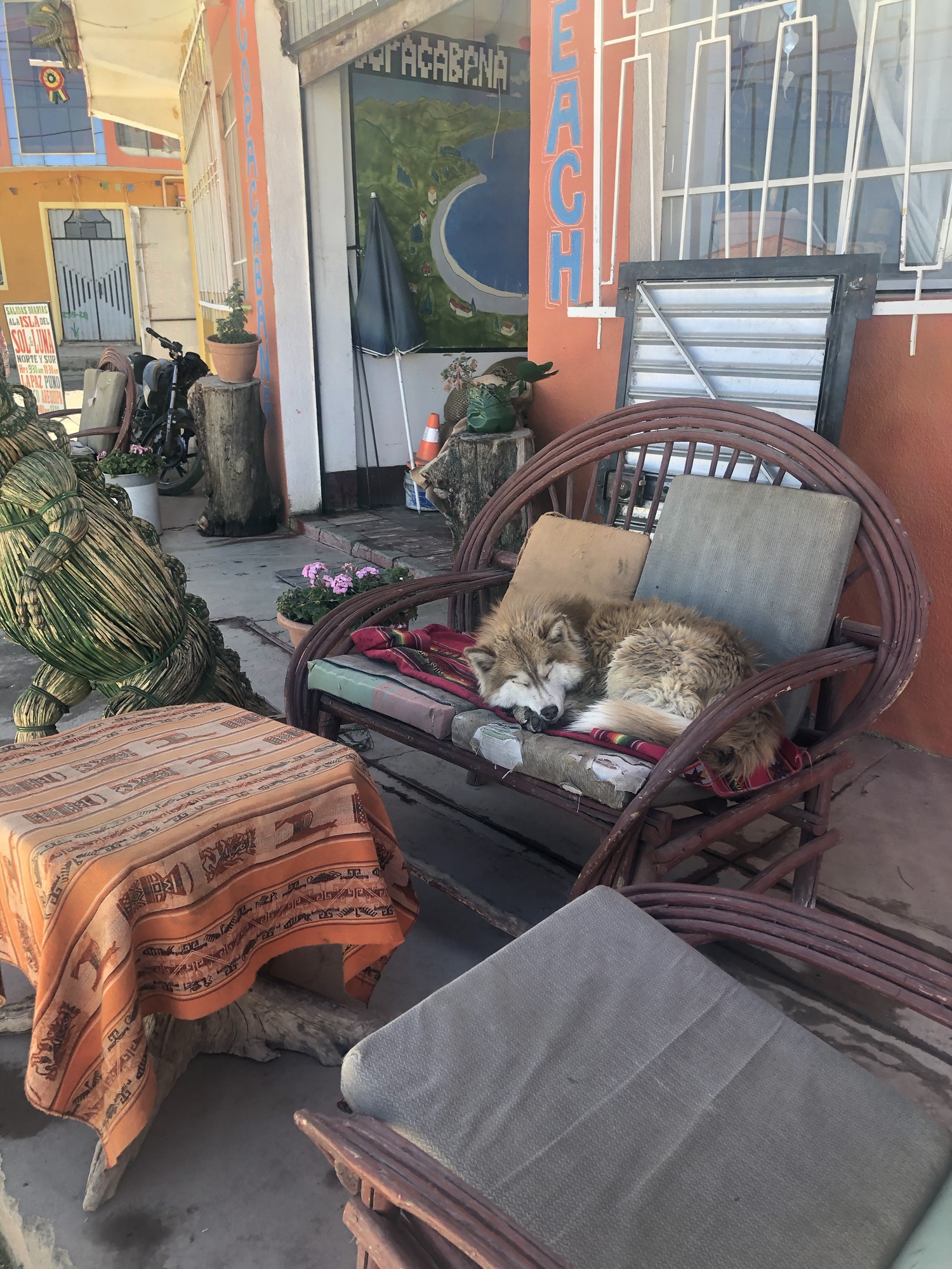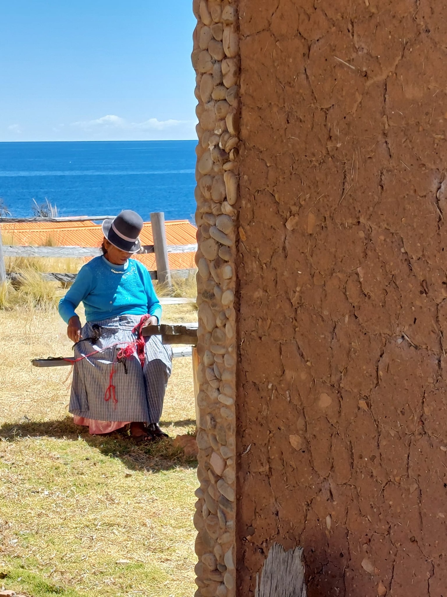 Fue un día de mucho barco, pero estuvo bien; tuvimos buen tiempo para navegar, descansamos y dormimos un poco en el barco, charlamos y conocimos las místicas y sagradas islas del Lago Titicaca … Al día siguiente desayunamos en el hostel e hicimos una breve visita a la Basílica de Nuestra señora de Copacabana, que es un edificio de estilo morisco que llama la atención y luego nos dimos una vuelta por el pueblo para gastar los últimos bolivianos antes de subirnos al bus que nos llevaría a Puno,Perú. Justo ahí , donde se coge el autobús …conocimos a Maca, otra de las tantas argentinas que nos fuimos encontrando por Copacabana. Maca tiene una tienda junto a la parada de autobús y hace empanadas y jugos de frutas deliciosos. Me preguntó de qué parte de España era y se alegró mucho al saber que era gallega y además de Ourense…pues de algún pueblo de Ourense de cuyo nombre no pudo recordar, había salido su madre hacía muchos años, para emigrar a Argentina. La siempre dura y eterna historia de la emigración.