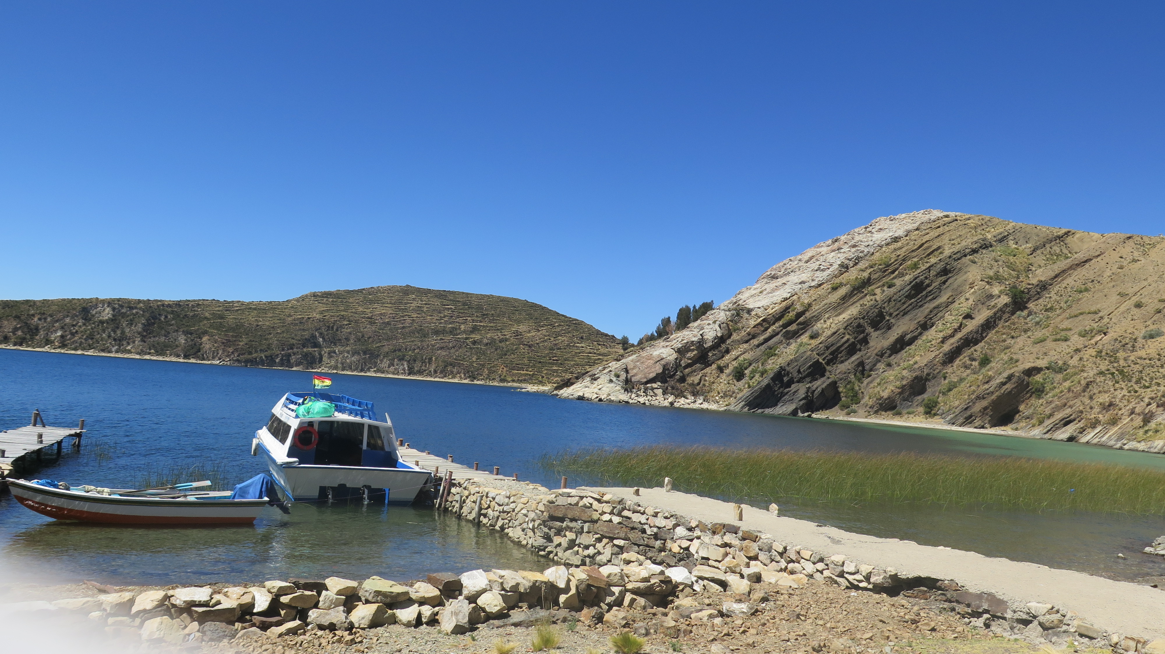 Al día siguiente madrugamos, desayunamos en el hostel y nos fuimos al puerto a buscar el barco de la compañía que nos llevaría a la isla del Sol y en el mismo barco apareció un guía que se nos ofreció para guiarnos durante todo el recorrido por un precio decente… Y así empezó nuestra visita guiada: Primero fuimos a la isla de la luna, luego a la isla del sol y por último a una isla flotante donde volvimos a comer truchaaa!! La trucha canadiense parece ser el plato estrella del Lago Titicaca!!