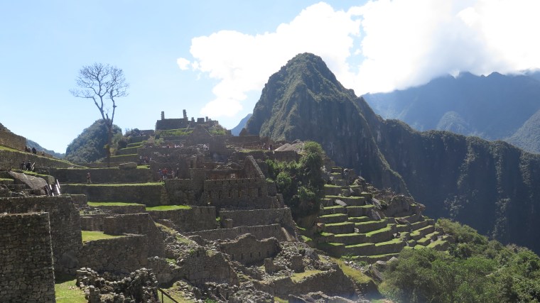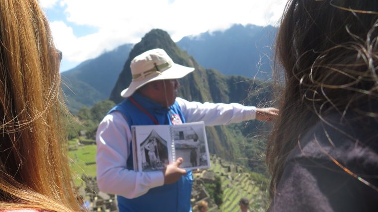 Nuestra visita al Machu Pichu se podría decir que fue una experiencia religiosa! 🙂↕️ Ya que no se nos presentó ningún problema y todo fluyó a la perfección… El día anterior le había enviado un whatsapp a Alex para preguntarle que tal tiempo hacía arriba y él me había contestado con una foto con niebla…Ni se me pasó por la cabeza que eso pudiera pasarnos a nosotros; suelo pensar en positivo ya por sistema y mucho menos se me ocurriría lamentarme por algo que todavía no había sucedido, así que estaba tan tranquila… Y el día que subimos al Machu Pichu, lucía un sol radiante y la temperatura era casi veraniega; lo que hizo que la visita fuera todavía mejor y que las fotos salieran más bonitas… aunque eso, también se lo debemos a Alex, y eso me reafirma aún más en que visitar un lugar histórico con un profesional, es fundamental; porque él se las sabe todas… Como moverse por la ciudadela sin ni siquiera enterarte de que Machu Pichu etiene unas 5000 visitas diarias y en cada turno alrededor de unas 400 personas… Pero Alex sabía en que dirección conducirnos para evitar las aglomeraciones de turistas y además consiguió que pareciera que estábamos nosotros solos. En ningún momento nos encontramos en un atasco de gente y además nos iba contando todo de forma muy pedagógica mientras resolvía todas nuestras dudas… A su infinidad de virtudes, que parece que estuviera tratando de venderlo …😄 Hay que añadir que es un es un fotógrafo sensacional y que tiene algo que deben de tener todos los buenos fotógrafos, que es la paciencia; paciencia para esperar a que te coloques, darte instrucciones sencillas y esperar a que saques lo mejor de tí sin aburrirse ni enfadarse… Vamos, que yo no se cómo son los otros, pero no puedo nada más que recomendaros a este guía; que como él me había dicho; «la mayor parte de la gente que viene al Machu Pichu,lo hacen una sóla vez en la vida, así que vamos a tratar de convertirlo en una experiencia maravillosa»