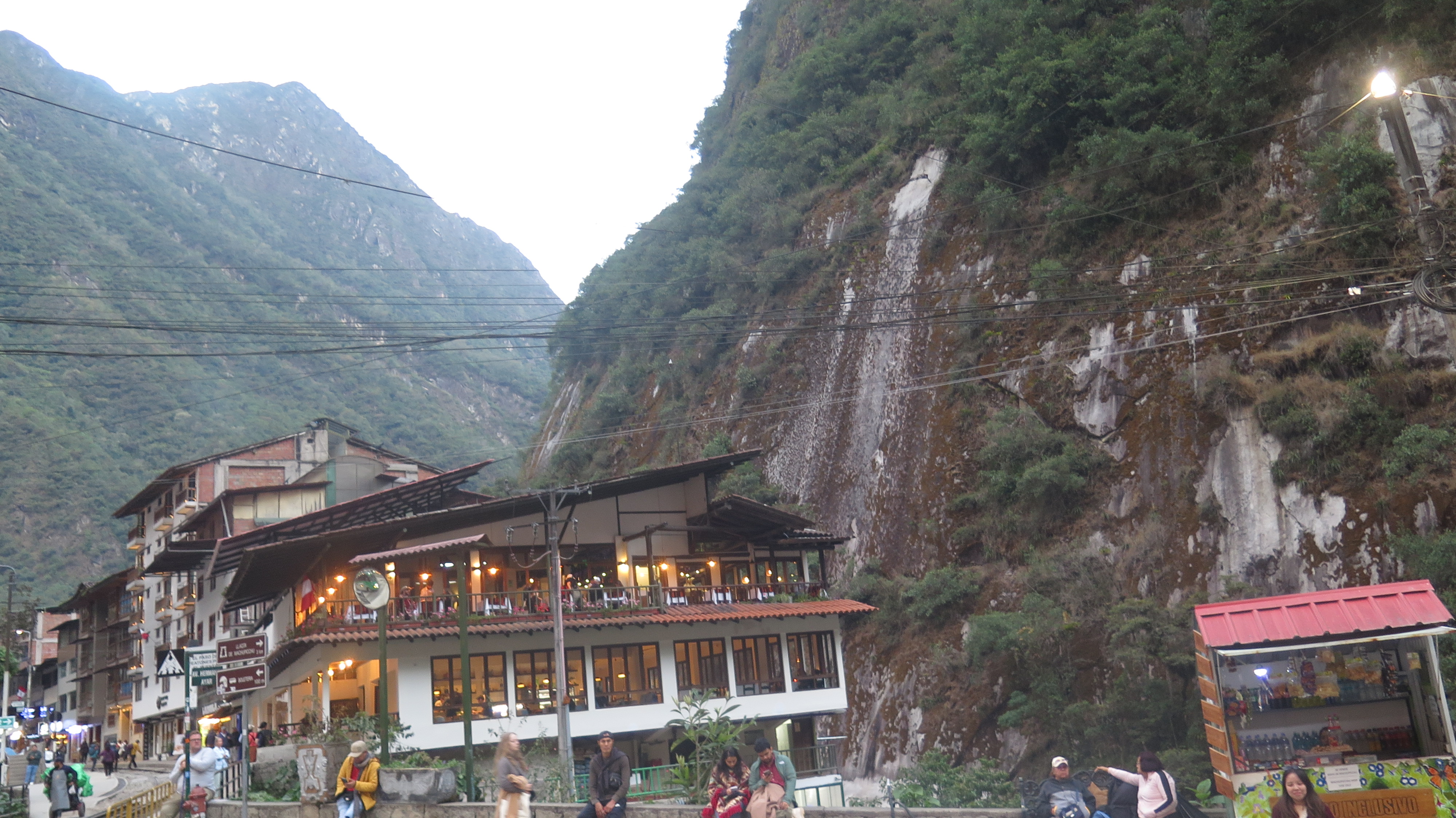 Después de todo el día recorriendo el Valle Sagrado, llegamos agotad@s a Ollamtaytambo; dejamos las mochilas en el hostel y salimos a cenar. Ollamtaytambo es un pueblo muy pequeño pero bonito, un lugar peculiar… Al día siguiente había que volver a madrugar para ir a la estación a coger el tren que nos llevaría a Aguas calientes (Machu Pichu ciudad). Y esto sí que fue un viaje en tren original; después de enseñar el pasaporte y de que le den el visto bueno a tu pasaje… A esas horas de la mañana en que todavía ni ha amanecido, empieza a aparecer gente vestida de incas tocando y cantando y llamándo a los pasajeros al tren y cada uno tiene que correr detrás de la letra indicada y caminar al ritmo de la música detrás de una persona que porta un estandarte hasta el vagón que le toca. Más tarde en el tren, representan una pequeña obra de teatro y el viaje no se hace para nada largo…
