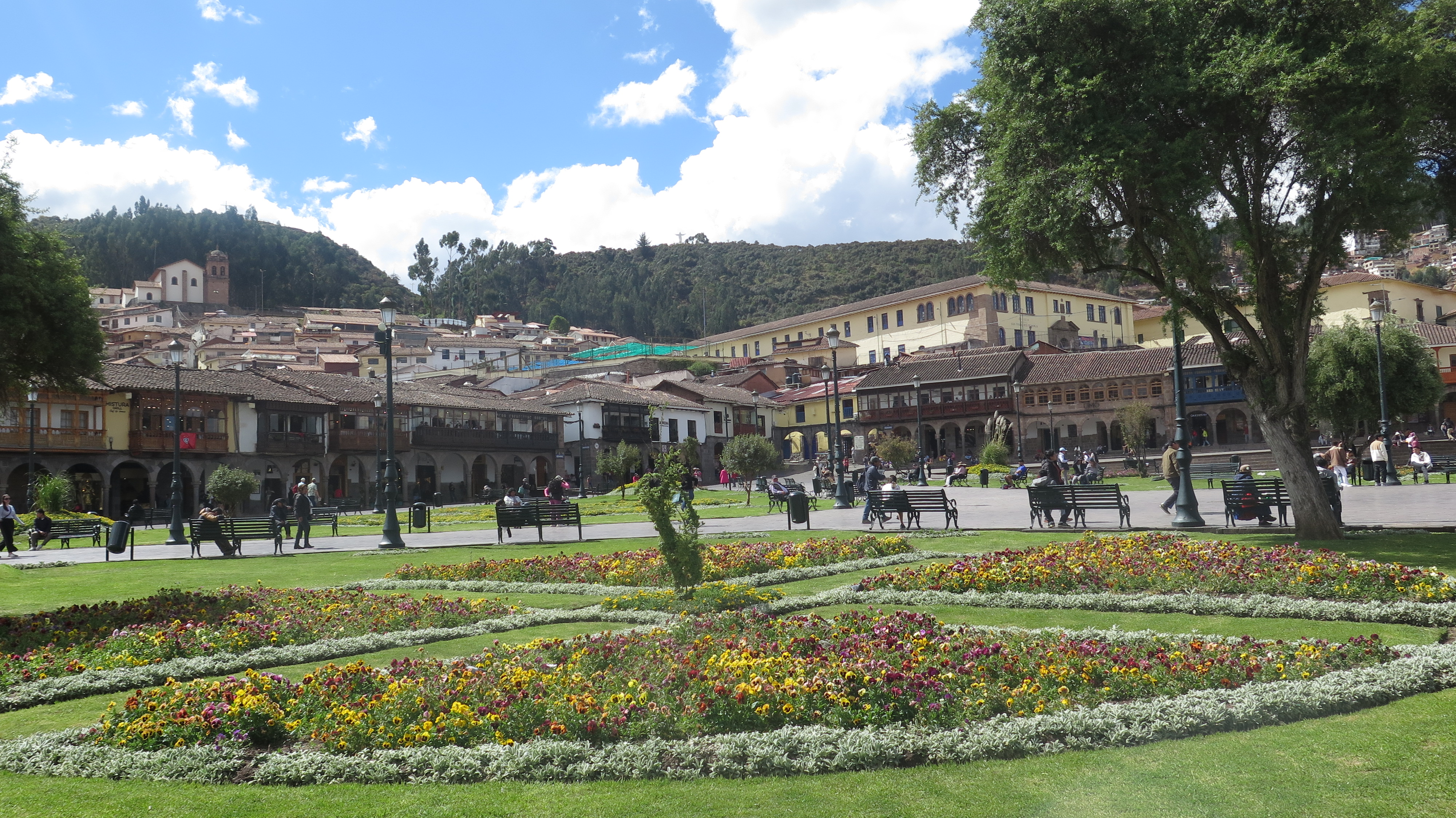 Llegamos a Cuzco por la mañana después de una noche bastante ajetreada en autobús-cama y aunque el hotel era un poco más caro de lo que pensábamos, estaba súper bien ubicado; en una zona tranquila y elegante, conocida como avenida de lo héroes, y con un personal de recepción muy agradable y resolutivo… Cuzco es una ciudad muy bonita; un lugar con una colorista arquitectura colonial, con buen ambiente cosmopolita en las calles y sobre todo limpia y bien cuidada. Pero también es una ciudad muy turística; llena de gente por todos lados, de agencias de viajes, de negocios de souvenirs y de casas de cambio… Los Restaurantes y las cafeterías, sobre todo en la zona de la plaza de armas, tienen los precios de cualquier ciudad europea, un café está sobre 15 soles; 3,50 euros o lo que es lo mismo; 4 dólares. Así que tiene sus pros y sus contras; «¡Nobody is perfect!» 😉